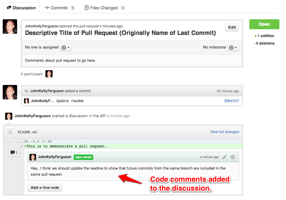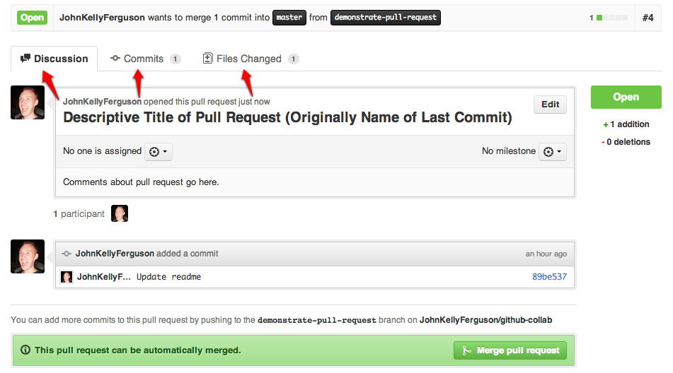 (Notice the three main tabs: Discussion, Commits, Files Changed.)